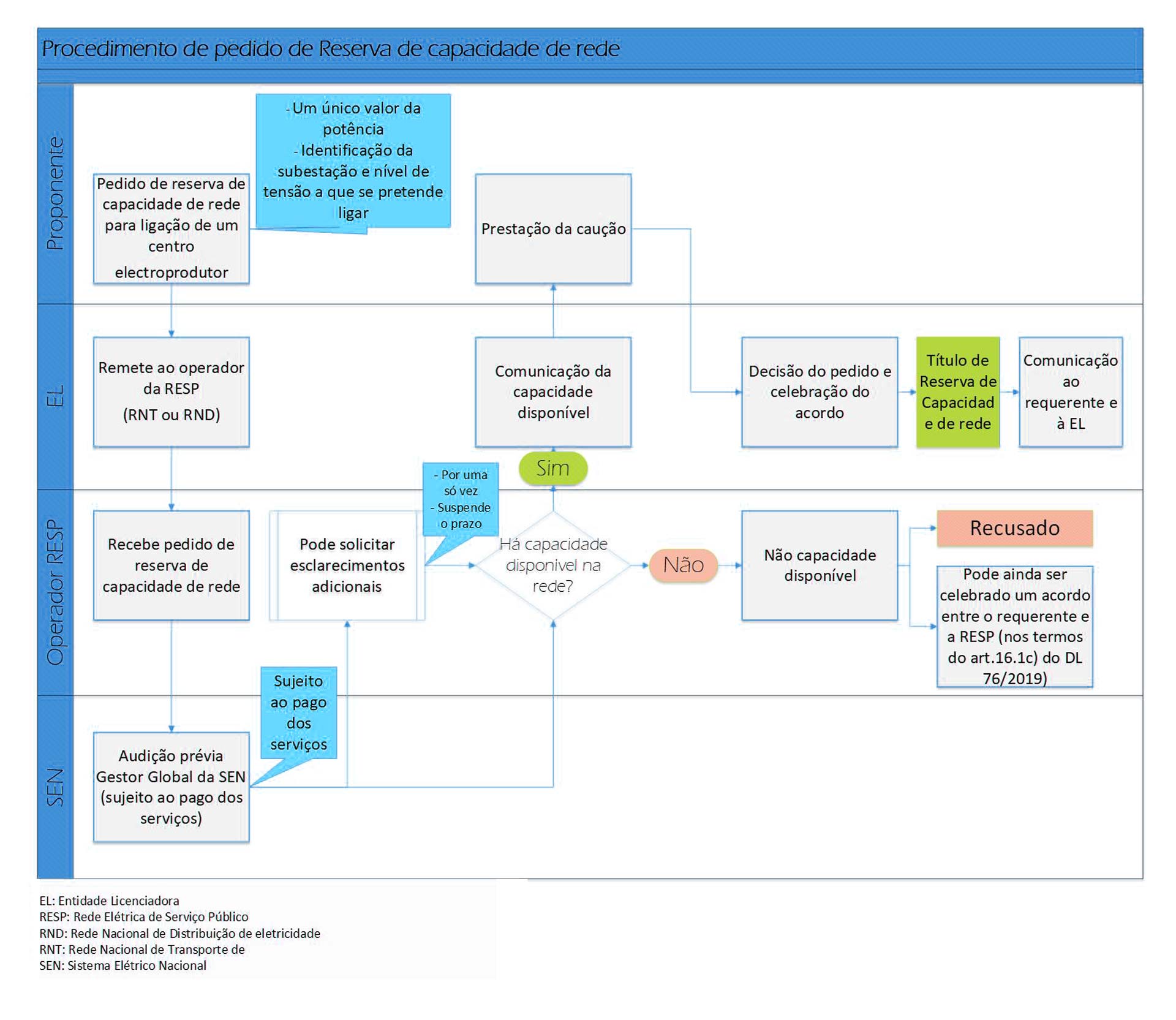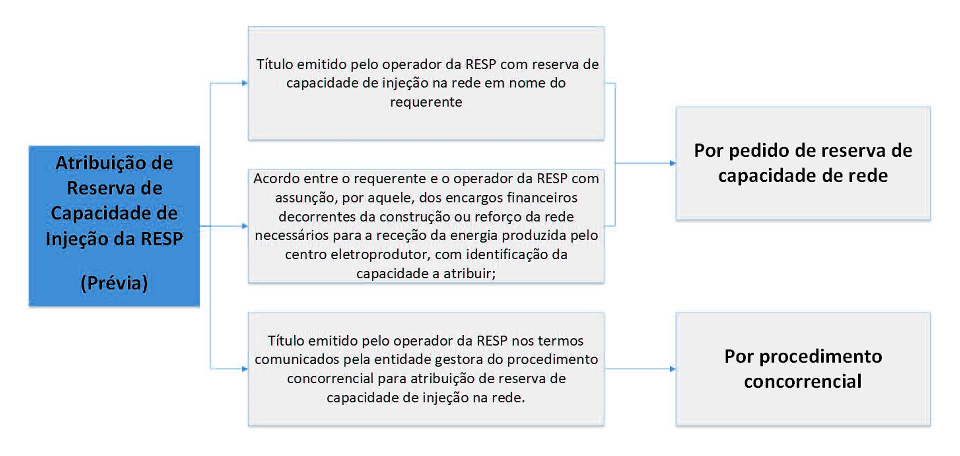 O início do procedimento para obtenção de licença de produção de eletricidade depende da prévia atribuição de reserva de capacidade de injeção na RESP.